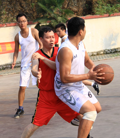 圖片分別為銷售員接力跑比賽和南北銷區籃球賽比賽現場