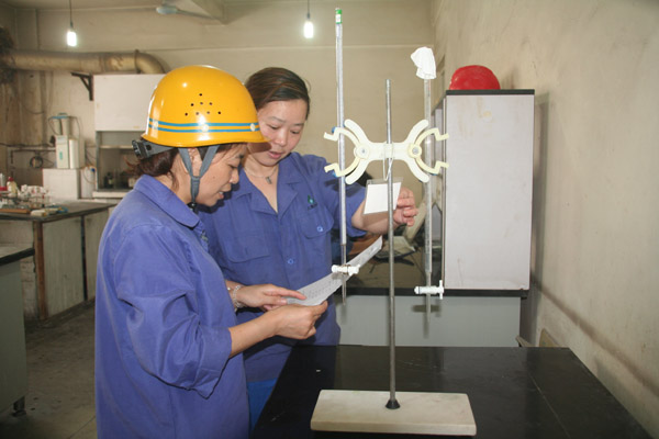 圖為該公司檢驗(yàn)中心員工將經(jīng)過(guò)銅陵市計(jì)量測(cè)試研究所檢定的酸式滴定管送到磷酸車(chē)間化驗(yàn)分析班,并了解該化驗(yàn)分析室實(shí)驗(yàn)條件和需求。(陳沐)