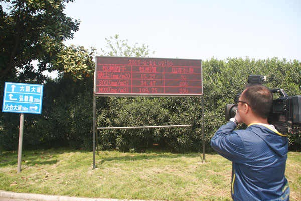 圖為4月14日,銅陵市電視臺記者來z6mg人生就是博化工公司取景拍攝,制作全市工業企業貫徹實施新《環境保護法》情況的電視新聞報道。當天,z6mg人生就是博化工公司的二氧化硫、氮氧化物、粉塵等主要污染物排放數據低于國家規定的排放限值。近年來,該公司在持續開展環境綜合整治、提升企業環:頹褰轡拿魃降耐保晟蘋繁T諳嘸嗖庀低,并在廠外設置LED顯示屏,實時發布環保在線監測數據信息,自覺接受社會公眾和媒體的監督。( 陳沐)