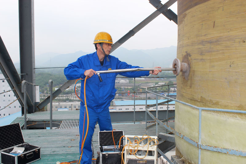 環境監測人員對車間尾氣進行監測